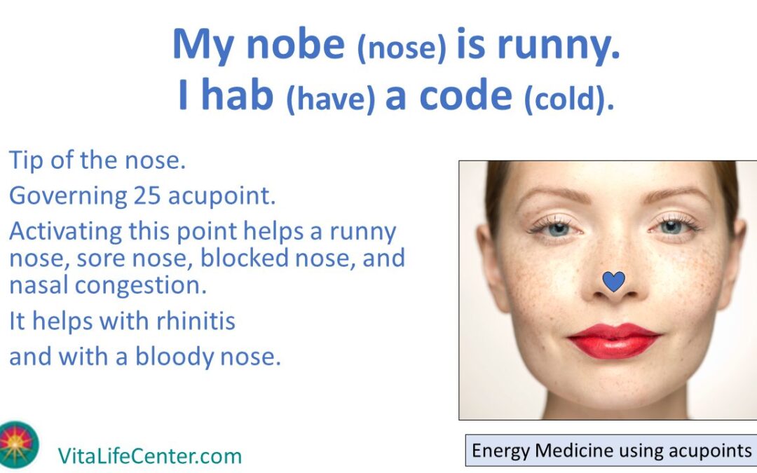While there are many acupoints and techniques for working with them, this point is easy to remember since it’s at the point of your nose! It is helpful for rhinitis, decreasing the constantly running nose (that’s me!), as well as decreasing sneezing and itching noses. One thing I wasn’t aware of, but am now, is that this acupoint can be used for shock, loss of (or maintaining) consciousness, and for reviving someone who is unconscious. Those practicing Eden Energy Medicine are likely aware of using the shock points on the heel of the foot. This can help too.
