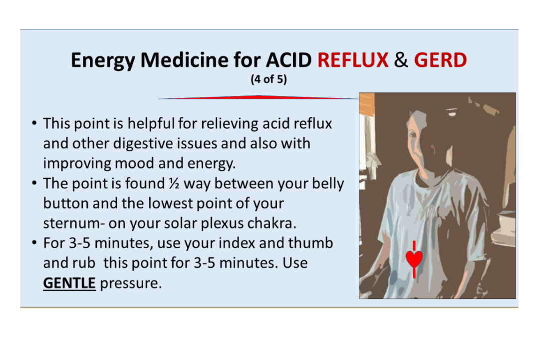 Another excellent point for relieving acid reflux symptoms. It is known as Central Meridian Acupoint 12 and it creates harmony within the stomach. That means it can also be useful for other stomach-related problems such as irritable bowel syndrome and lactose intolerance. Luckily, we can use it for reflux and also benefit from its’ positive influence on overall mood and energy levels. Many of us like that!