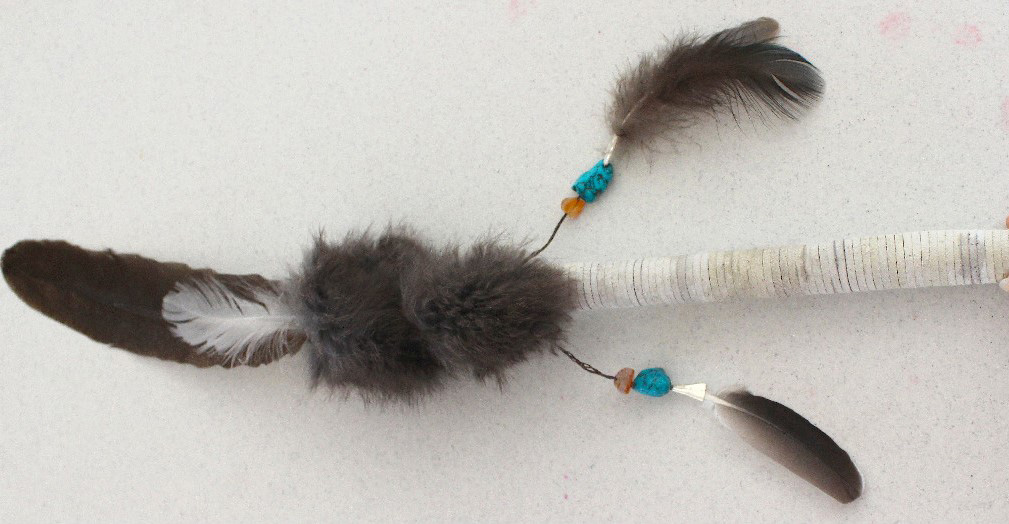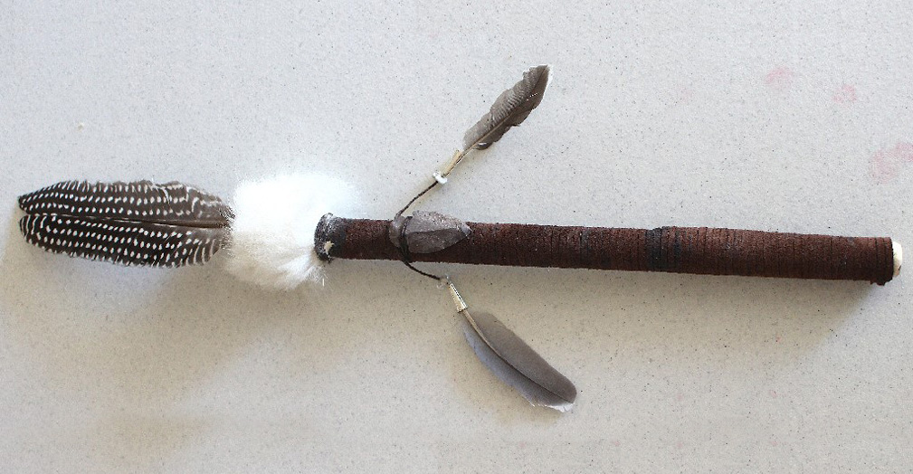 Each stick is one-of-a-kind, featuring woods, beads, feathers, and furs that hold symbolic meaning—peace, protection, strength, healing, clarity, and more.